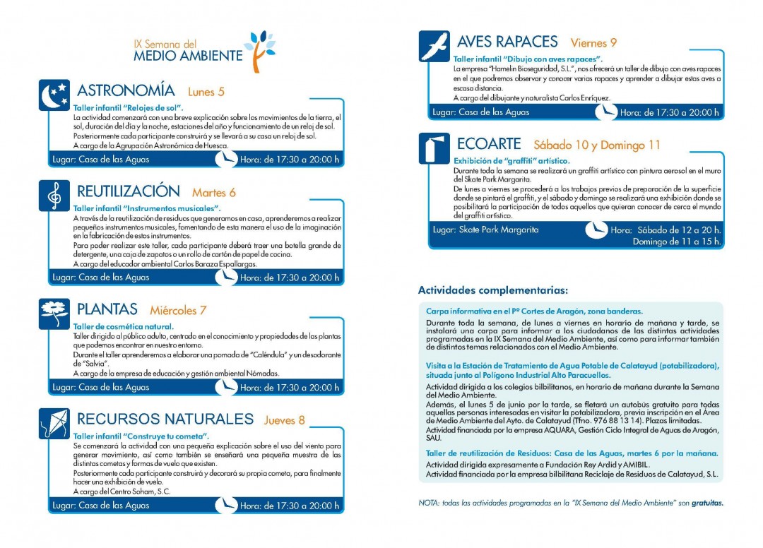Ademas, el lunes 5 de junio por la tarde, se fletará un autobus gratuuito para todas aquellas personas interesadas en visitar la potabilizadora, previa inscripcion en el Área de meio Ambiente del Ayot. de Caltayud ( Tfno. 976881314). Plazas limitadas.