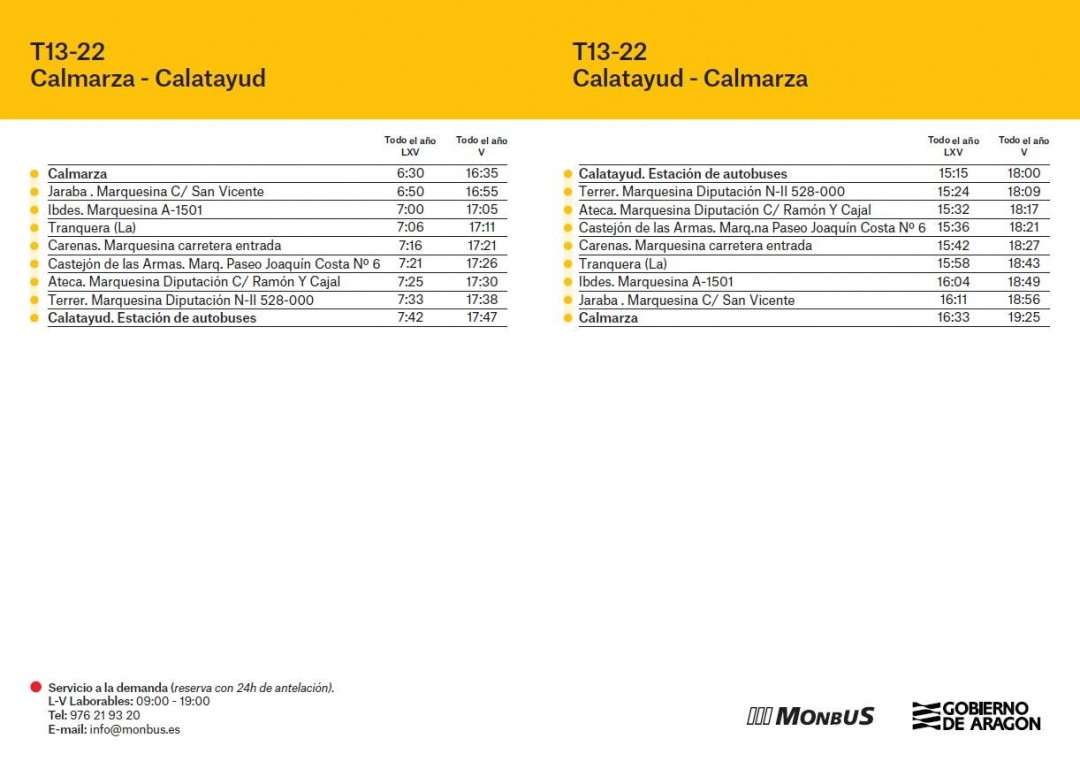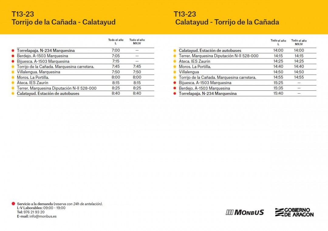 - T13-23 TORRELAPAJA – CALATAYUD: Torrelapaja, Berdejo y Bijuesca a demanda.