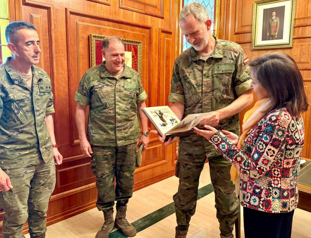 Posteriormente, el Rey ha recorrido las instalaciones, visitando las aulas de asistencia sanitaria y de montaje de equipos; los talleres de vehículos ligeros y el avanzado de aeronaves; ha observado unas prácticas de los cursos de Policía Militar y de Cabos 1º; y por último ha conocido el proyecto inteligencia artificial generativa “Gonzalo”, desarrollado por el Ejército de Tierra, un asistente virtual con capacidades avanzadas para ayudar en tareas clave del ámbito militar, desde la gestión documental hasta el apoyo al planeamiento operativo.
