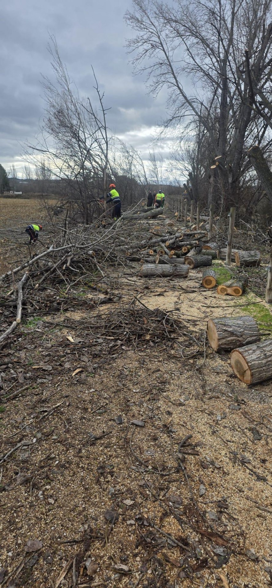 El Ayuntamiento de Calatayud está llevando a cabo trabajos de limpieza, desbroce y retirada de árboles dañados en el sendero fluvial situado entre el parque de La Serna y la desembocadura del río Jiloca en el Jalón. Así se hace tras los graves daños ocasionados por un incendio registrado la pasada primavera.