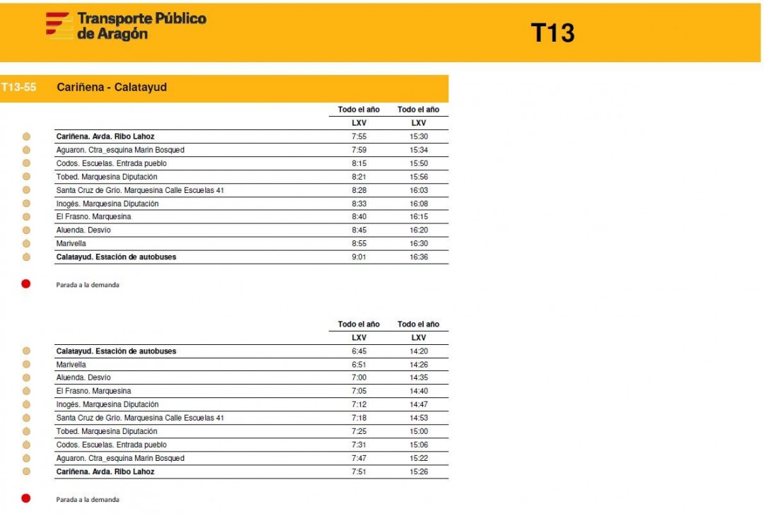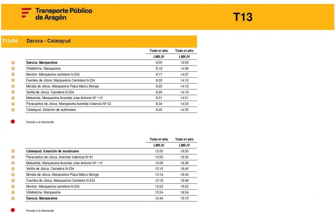 Este servicio de transporte público de Aragón lo prestará la empresa MomBus para la denominada Ruta 13, que incluye las conexiones entre las comarcas de Calatayud y el Aranda con Zaragoza, así como la de distintos municipios de las comarcas de Valdejalón, Daroca y Cariñena con la estación bilbilitana.