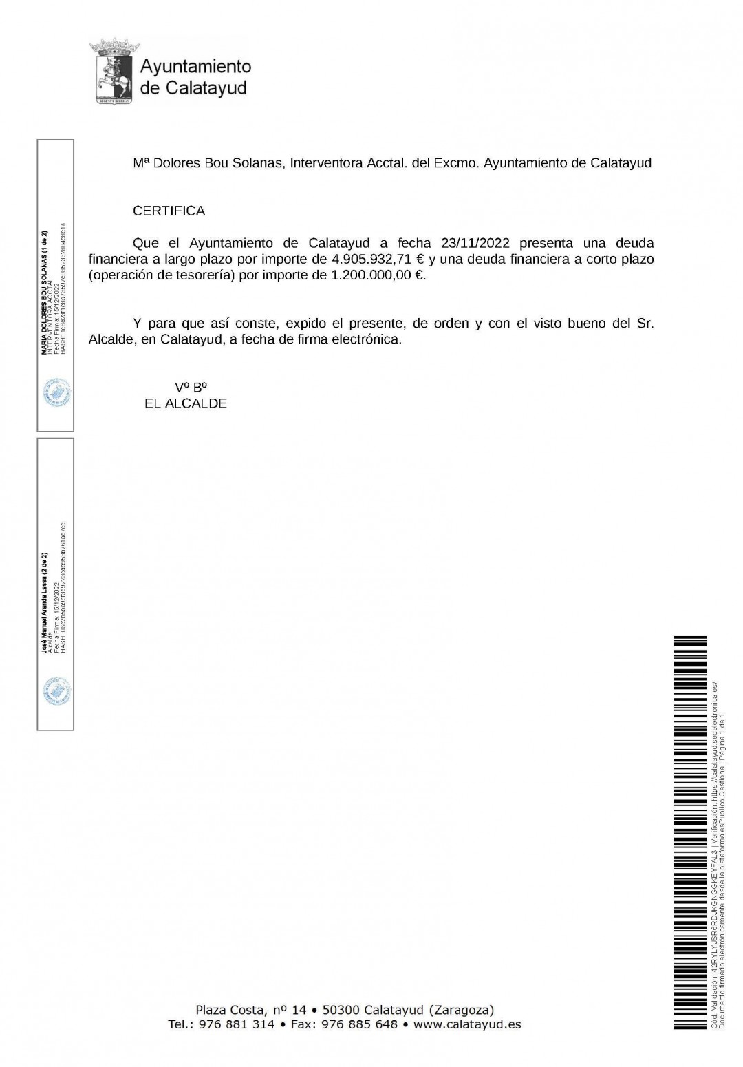 La deuda municipal a fecha actual se sitúa en 4.905.932 euros a largo plazo, una cantidad certificada por la Intervención Municipal1-. La deuda municipal a fecha actual se sitúa en 4.905.932 euros a largo plazo, una cantidad certificada por la Intervención Municipal.