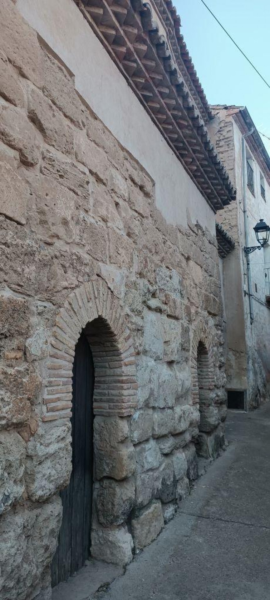 Del primitivo edificio medieval se conserva y es visible un muro de grandes sillares de piedra con dos puertas de arcos apuntados de ladrillo. En este inmueble se descubrieron unas grietas antiguas relacionadas con reparaciones que se hicieron con anterioridad en el centro de la nave y consecuencia de los empujes que trasmitía el arco fajón, un elemento estructural que forma parte de la bóveda de cañón para reforzarla.