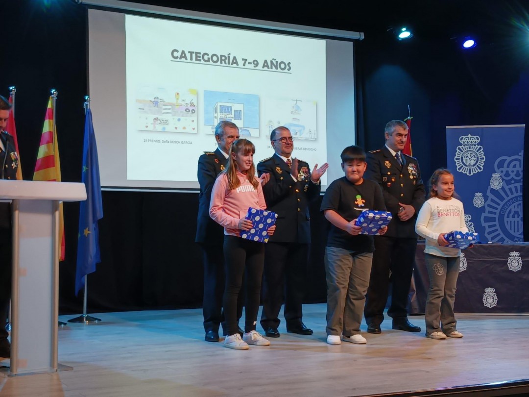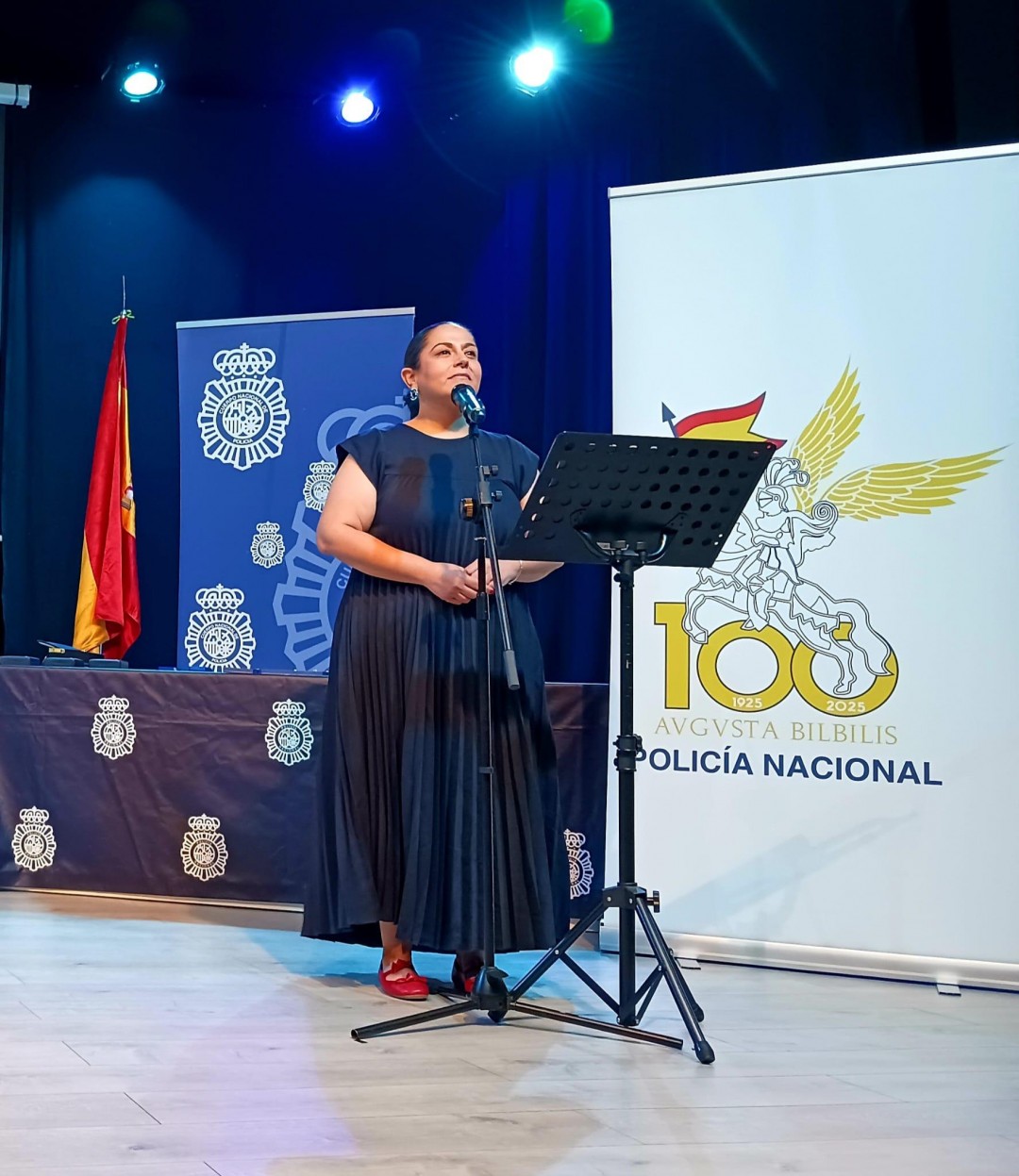 La entrega de los premios de dibujo a los pequeños y jóvenes autores marcaba el final, al que ponía el broche musical la soprano Elisa Joven, interpretando el Himno de la Policía Nacional.