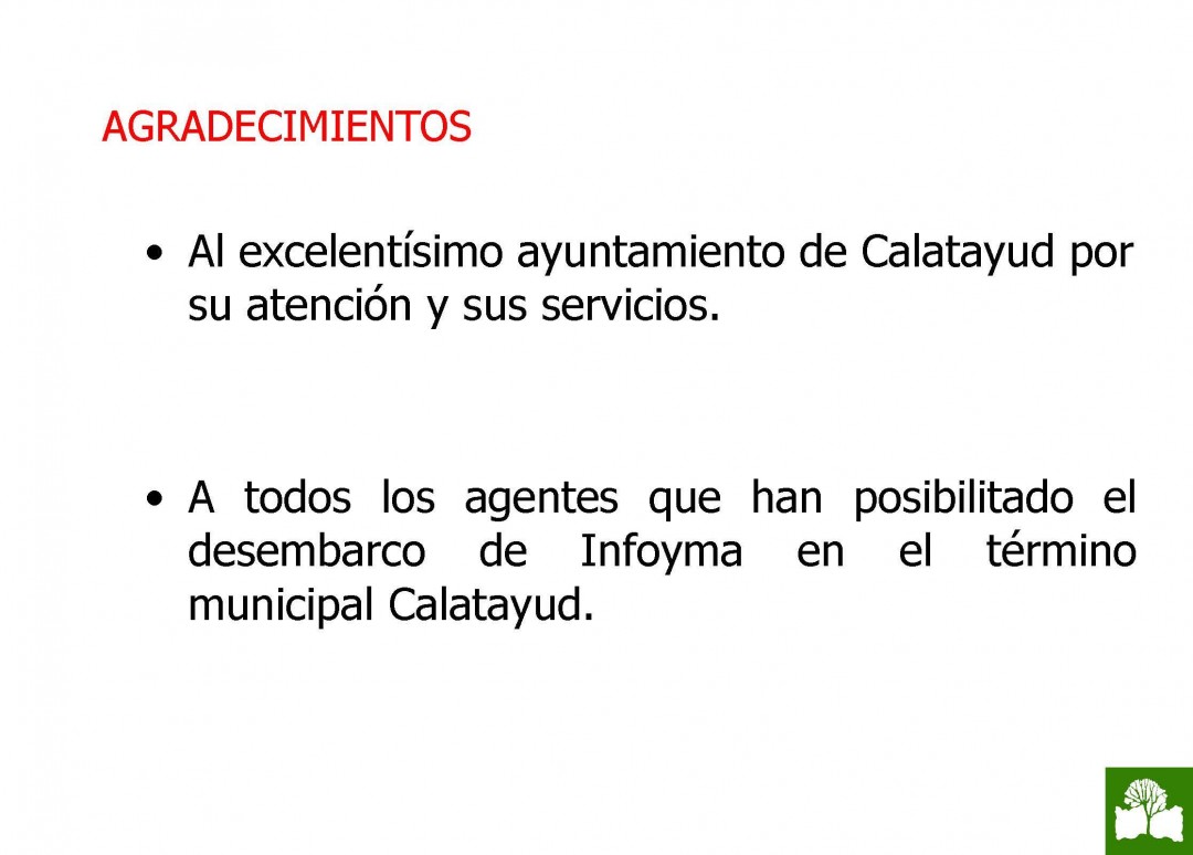 El responsable del grupo, José Antonio Fernández, ha informado a los medios de comunicación en Calatayud (según el informe que se adjunta) que la elección de esta ciudad responde a “la situación geográfica que presenta, donde es posible ofrecer un excelente servicio logístico y optimizar el abastecimiento de materias primas”. Asimismo ha agradecido al Ayuntamiento de Calatayud y a otros agentes que han permitido la llegada de Infoyma a Calatayud.