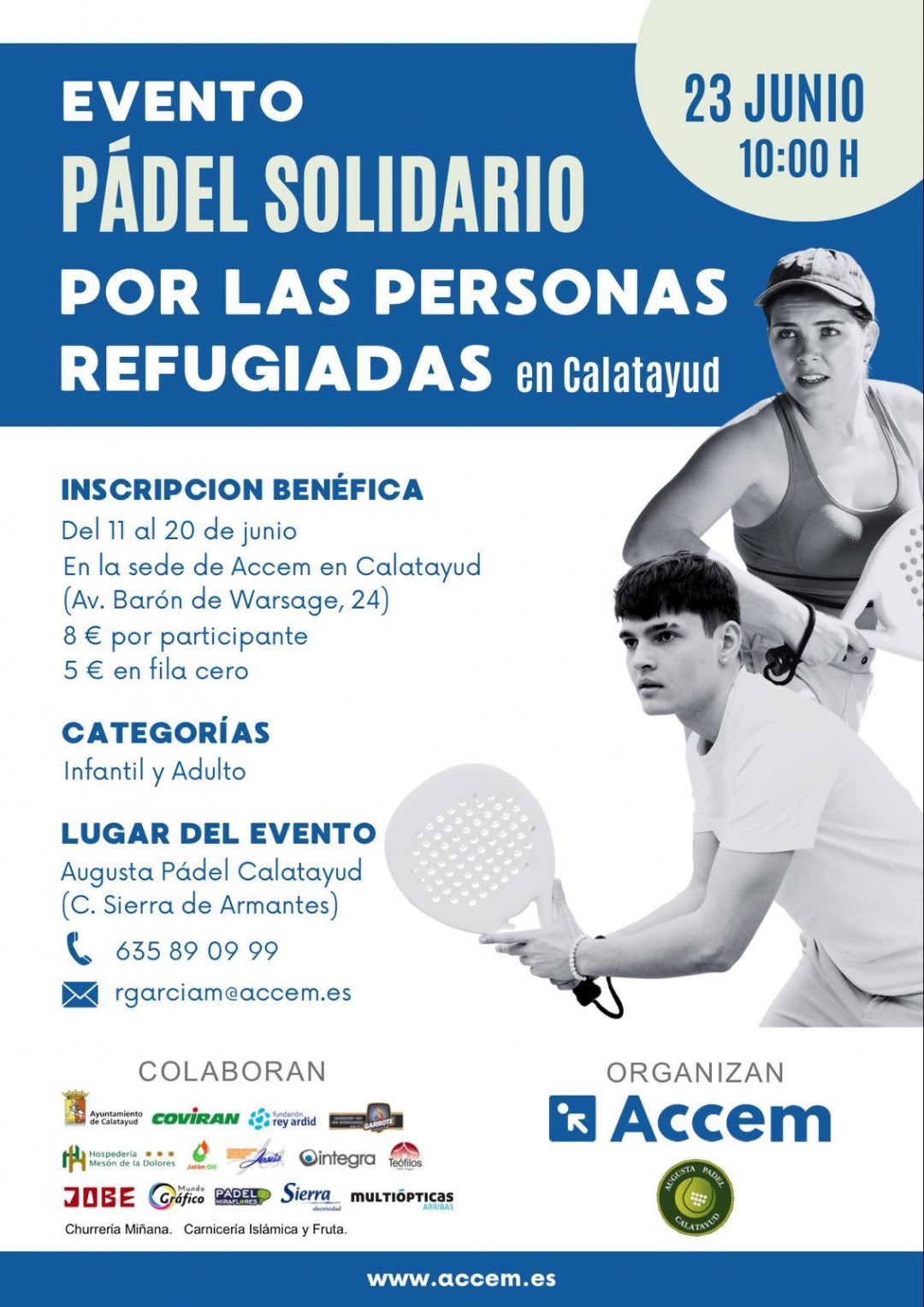 También para el domingo día 23 de junio a partir de las 10.00 en el Augusta Pádel Calatayud habrá un torneo benéfico para el que hay una inscripción benéfica de 8 euros o de 5 euros en fila cero y pueden hacerse en la sede de Accem en la avenida Barón de Warsage 24.