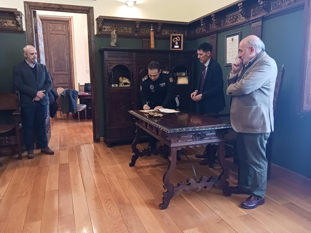 Los nuevos oficiales recogían las felicitaciones por haber superado el proceso de concurrencia competitiva que les ha llevado a asumir esta nueva responsabilidad. Con ellos han estado también el subinspector Alfredo Langa y el oficial Víctor Casado,  y han tenido la oportunidad de verles jurar el cargo sus familiares.