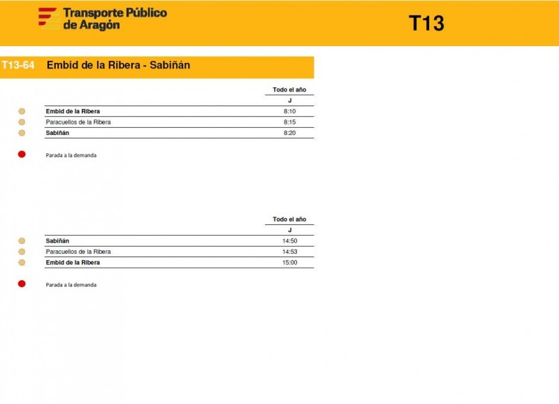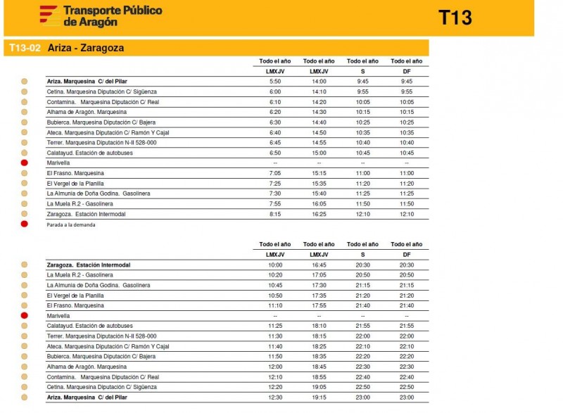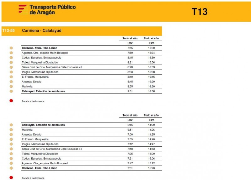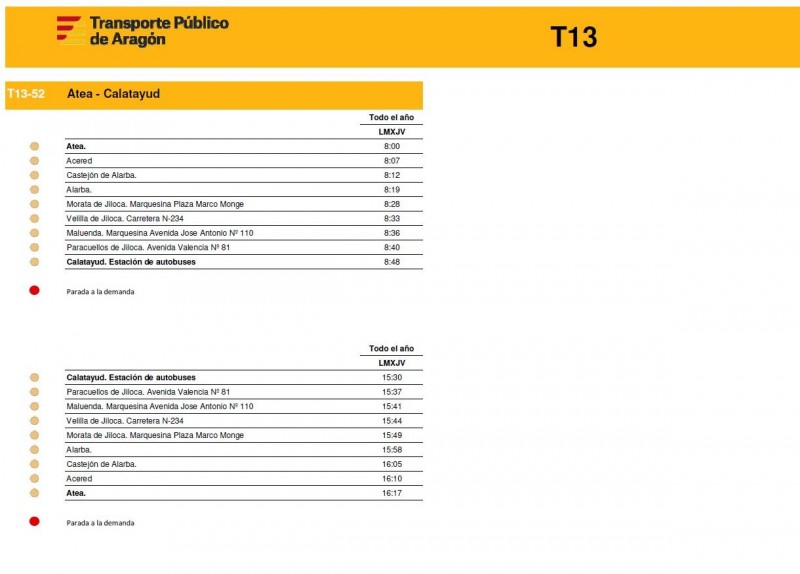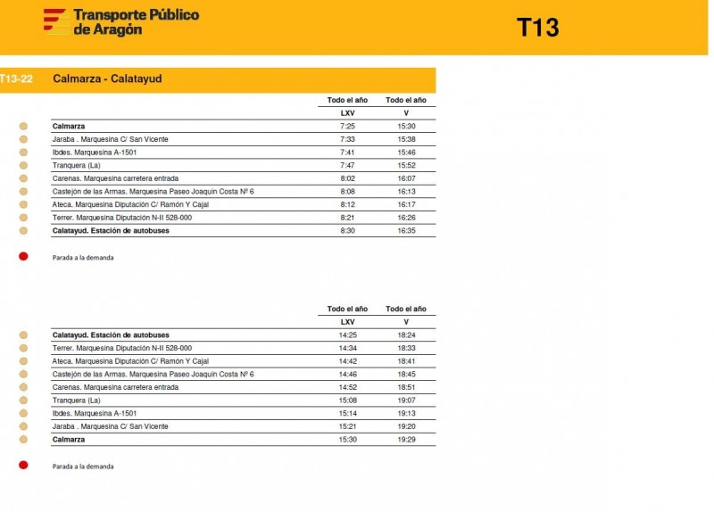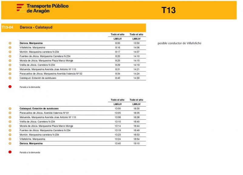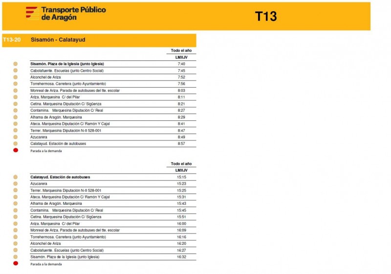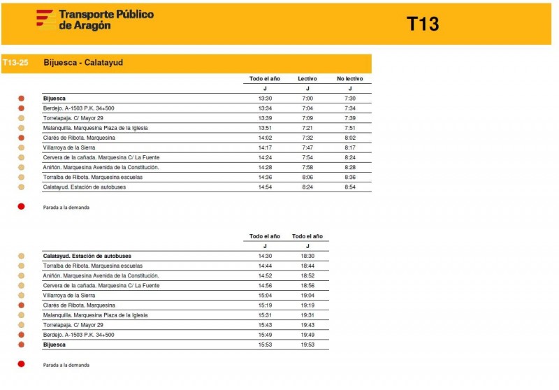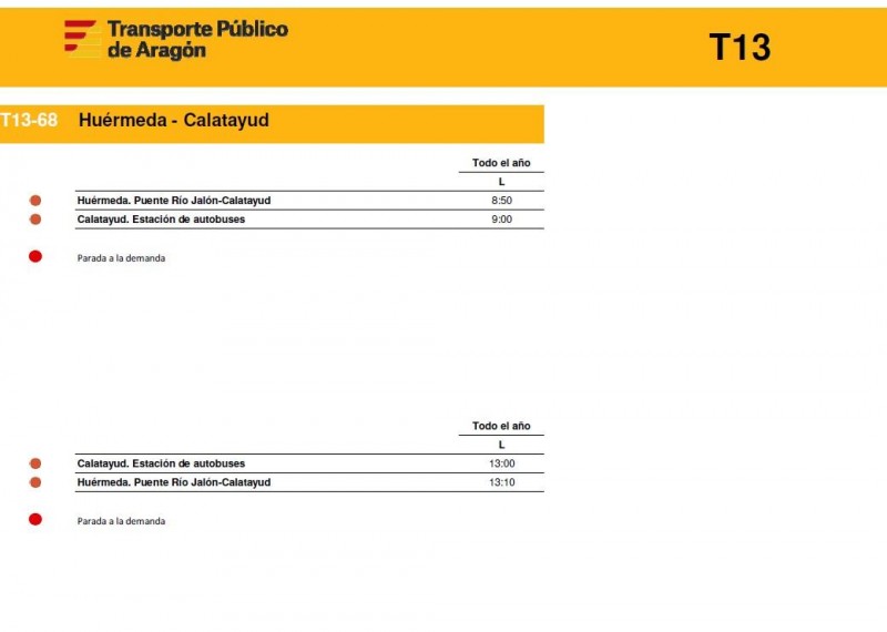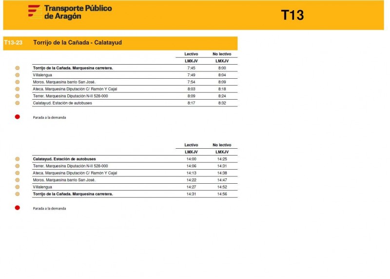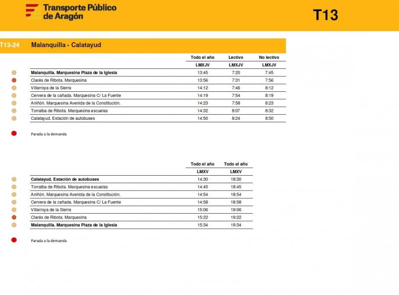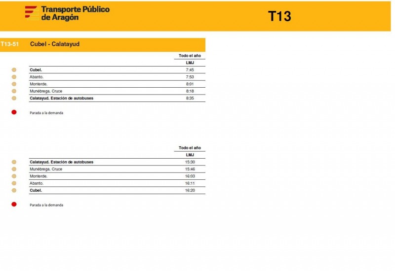 En este enlace pueden consultar los horarios de todas las rutas de la T13 de la Comunidad de Calatayud y el Aranda tal y como empezarán a funcionar este próximos lunes 15 de diciembre