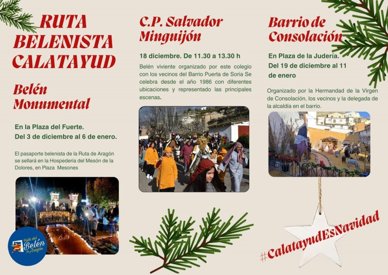 El punto neurálgico de estas fiestas o punto de partida es la plaza del Fuerte donde está el Belén Monumental que forma parte de la Ruta del Belén de Aragón. El año pasado recibió más de 130.000 visitantes. En la misma se han integrado 28 municipios y 36 belenes. Entre quienes la recorran habrá sorteos para quienes sellen el pasaporte del visitante. En Calatayud se podrá sellar en la Oficina Municipal de Turismo y en el Mesón de La Dolores, que premiará con estancias para quienes entren a formar parte del sorteo de regalos que hace la ruta.